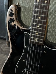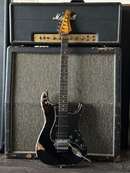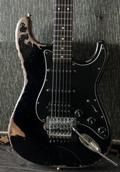 This is a new 2026 guitar. This is a custom ordered Kauffmann with the 80's shredders in mind. It has a HSS configuration, Gotoh double locking tremolo and Heavy Aging, Alder body, handwound pickups and a Bull Black finish.