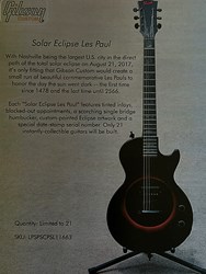 With Nashville being the largest U.S. city in the direct path of the total solar eclipse on August 21, 2017, it's only fitting that Gibson Custom would create a small run of beautiful commemorative Les Paul to honor the day the sun went dark - the first time since 1478 and the last time until 2566.