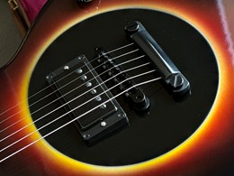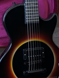 This unique model features a flat (non-carved) top with a striking solar eclipse graphic, setting it apart visually from traditional Les Paul designs. Combined with a minimalist single-pickup configuration and stealth-inspired blacked-out aesthetic, this instrument offers both a distinctive look and a focused, raw tonal character.