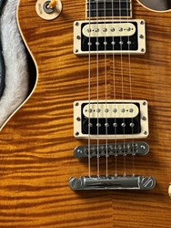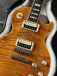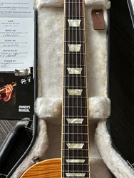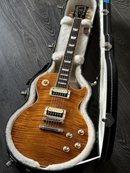 Here is the already legendary original 2010 Limited Run Gibson Slash AFD, not the 2020 production model. Only 600 of these AFD's are made and the top, woods, parts, craftsmanship, playability and tone are all on a higher level. Slash and Gibson really did a good job with this model. Inspired by Slash his own Derrig Les Paul which he used in the Appetite days and still has in his collection. Great sound, just listen to.......Slash. He doesn't use many effects so this guitar and a tube amp produce his signature tone. Solid mahogany body, flamed maple top, Seymour Duncan Slash pick-ups. The guitar is in very good condition, just some finish dings here and there (see photos) The original Slash case and checklist are included. The weight is 4kg.