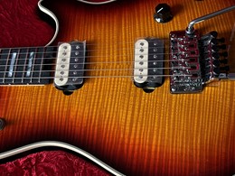 With its basswood body and beatiful carved 5A flamed maple top, the Wolfgang delivers a balanced tone with strong mids, tight lows, and clear highs. The direct-mounted EVH Wolfgang humbuckers provide powerful output and dynamic response, ideal for both rhythm and lead playing.
