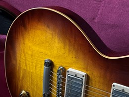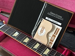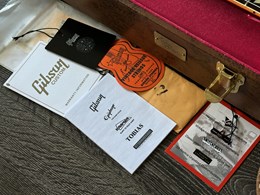 The neck profile is the chunky ’50s “C” style, giving a full, comfortable feel. Frets are narrow-tall (historic style) and are Plek-machine leveled for enhanced playability. Electronics are true to form: two Custombucker Double Whites (unpotted) deliver rich, vintage-style tones with clarity and resonance. Hardware includes vintage-style Kluson tuners, an ABR-1 bridge with a lightweight aluminum stop tailpiece, and other historically correct appointments throughout.