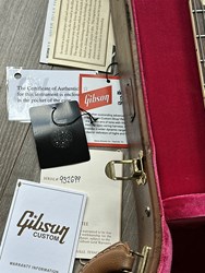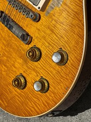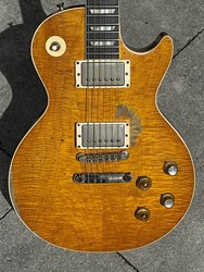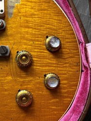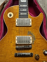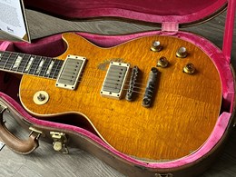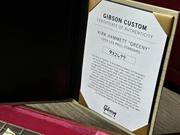 This is a great looking 2023 Gibson Custom Shop version of the 1959 Kirk Hammett ''Greeny'' with the curly flames like the original. So it has the right flame and an epic sound. These aren't just collectables, this is a really good guitar aswell. Lot's of sustain, resonant open sound, loud acoustic and creamy in an amp. The weight is 4,1kg.